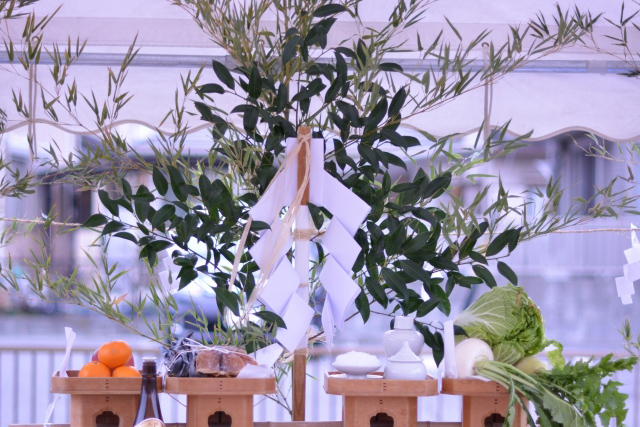 工事を始める前に行う、その土地の神を鎮め 土地を利用させてもらうことの許しを得る 神道の祭儀です。